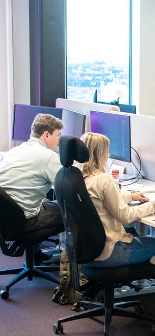 På kontoret i Stockholm, hemma vid köksbordet eller från balkongen i Spanien? Det är upp till dig var du vill göra ditt jobb. Men trots att vi kan jobba remote är det många som gillar att komma in till kontoret. Vi sitter på 21:a våningen i STHLM NEW 01 vid Gullmarsplan i Stockholm. Här har vi skapat ett kontor som man är på för att man vill, inte för att man måste. Både utsikten och stämningen är fantastisk och vi trivs riktigt bra uppe bland molnen!